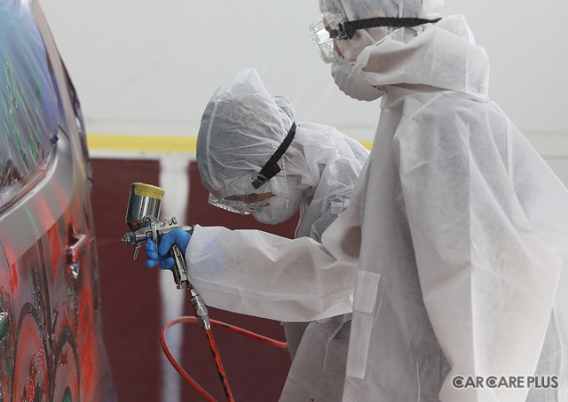 今回、特に高い人気を集めていたのは、プロが現場で使用する塗装ブースでスプレーガンを使い、水性塗料で実車にペイントする塗装体験でした。カラフルな塗料を吹き付ける子どもたちの表情は真剣そのものでした。屋外でも塗装体験が行われており、そちらも人気でしたね」