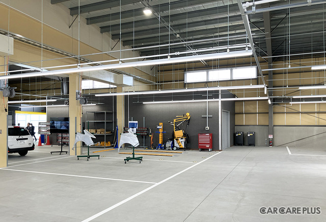 床面はフラットで、工場内は全体的に明るい設計。工具類などKTCのツールが導入されていた