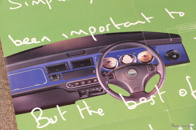 写真のカタログは当時の4つ折り・厚紙のカタログ。裏表紙にはROVER JAPANの記載がある。ミニの生産は2000年までだったから、まさに終盤に登場したクルマだった。