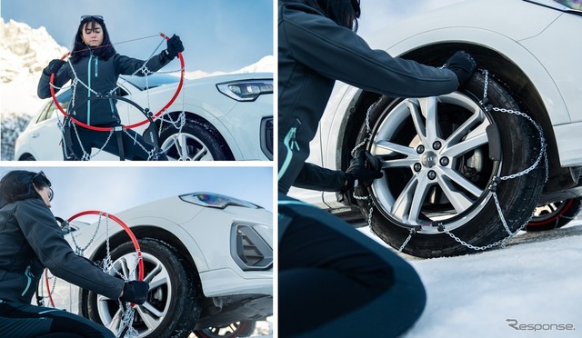 新製品のリフレックス・クロスは、SUV特有の車高・重量バランスに最適化した専用設計となっている。チェーンはあらかじめ組み立て済みで、工具を使わず60秒で装着が完了する。装着性の高さはもちろん、雪上や氷上でのトラクション性能でも高い評価を獲得している。