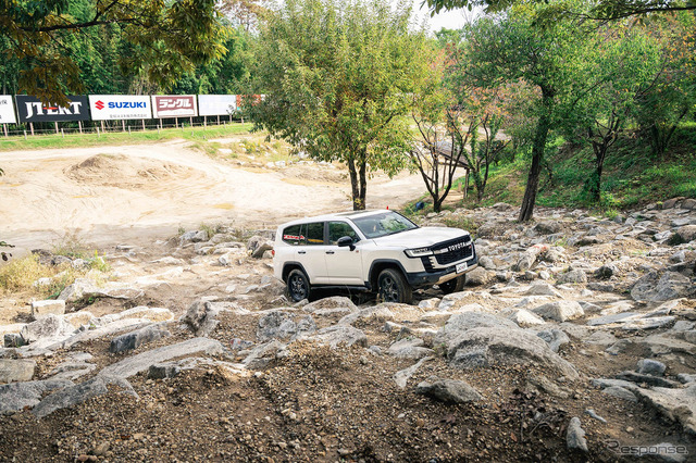 一方では、さなげアドベンチャーフィールドのスタッフがドライブする車両に同乗して中級コースを走行するメニューも用意される。こちらはロックセクションやガレ場の急登坂など、レベルの高い走りを助手席や後部座席から体感できるというものだ。大きく傾く車体に驚いたり、これまで経験したことのない角度で上っていくクルマでタイヤのグリップ力を感じるなど、オフロード初心者には新鮮な走行フィーリングで驚きと楽しさが詰まったプログラムとなった。