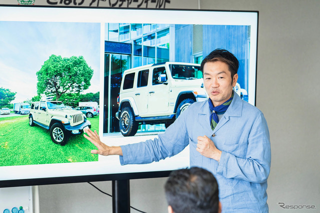 次に、関西のラジオ局FM802のDJである大抜卓人さんが登壇。クルマ好きを自認し、ラジオ番組でもクルマやドライブ、タイヤの話題を盛り込むことが多いという。愛車のジープ『ラングラー』でオープンカントリーを履きこなしていることも紹介され、当日は会場にその愛車も展示された。