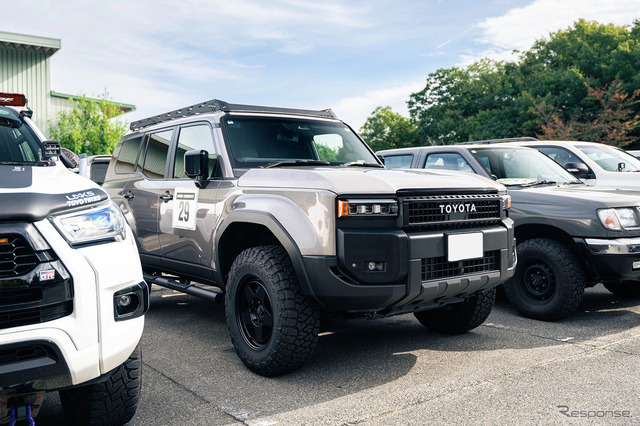 シンプル仕様のトヨタ『ランドクルーザー250』は、もともと別ブランドのタイヤを履いていたが、オプカンのR/Tトレイルが発売されると、そのデザインのカッコ良さに惚れ込み履き替えたという。タナベのスプリングでリフトアップし、275/70R18を堂々と履きこなすスタイルだ。