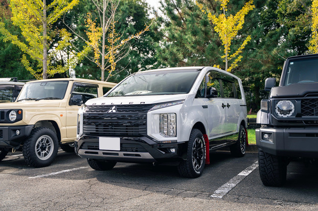 ノーマル車高でシンプルに仕上げた三菱『デリカD:5』には、オープンカントリーA/T III(225/65R17)を装着。ホワイトレターにこだわり、レッドのマッドフラップとのコンビネーションがお気に入りだという。