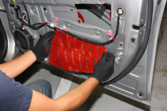 なお、インナーパネルに「サービスホール」と呼ばれる大きな穴が開いていたら、制振材でその穴を塞ぐと、背圧の車内への回り込みを抑制できる。ここまでやると必要な部材の量が増えるので相応にコストがかさむが、実行する価値は大だ。