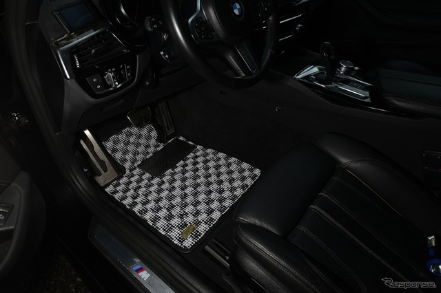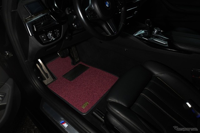 「グランクローネ」はツイード調の織り柄で上質な風格を演出する。ツイード調に織ることで、再生ペット素材がもつ繊維の艶とハリが存分に発揮され、ドライビング時、足の踏みしめ感でも高級さを実感できるとのこと。ツイードブラックとツイードボルドーの2カラー展開。