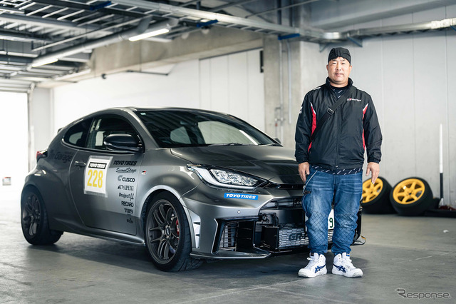 カテゴリー2に参加したのは、GRガレージ高崎のショップデモカーであるトヨタ『GRヤリス』(スタッフの川津さんがドライブ)。普段はジムカーナなども楽しんでいる車両だが、今回はフルコースで思いきり走れる絶好のタイミングとあって、ショップに集まるお客さんを引率して参加した。タイヤにはプロクセスR1R(255/35R18)をチョイスしている。