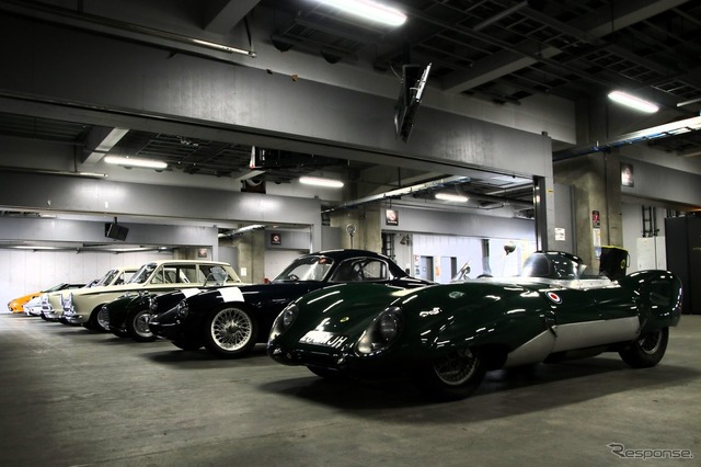 雪になるかもという予想は辛くも外れたが、小雨降る富士スピードウェイに続々と新旧ロータスが集合。その数およそ50台。ピットにはフォーミュラマシンやワークスモデルをはじめ、歴代クラシックロータスが展示され、注目を集めていた。