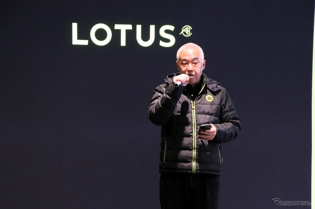 ロータスカーズヘッドオブジャパンの寺嶋正一さんはオープニングで、「ロータスの生誕77周年をオーナーの皆様と共にお祝いできることを非常に嬉しく思っている」とコメント。そして、「ロータスは1948年、小さなガレージからビジネスをスタートさせ、数々のレースを経てF1のワールドチャンピオンシップまで登りつめて来たブランドだ」と歴史を振り返る。「創設者のコーリン・チャップマンはパワーを増すとストレートが速くなる。ただ軽量化をすればどこでも速くなるという哲学のもとにクルマ作りを進めてきた。多くのオーナーは、そういう哲学を深く理解され、ロータスの77年の歴史を支えてきた真の主役だと考えている」と述べる。