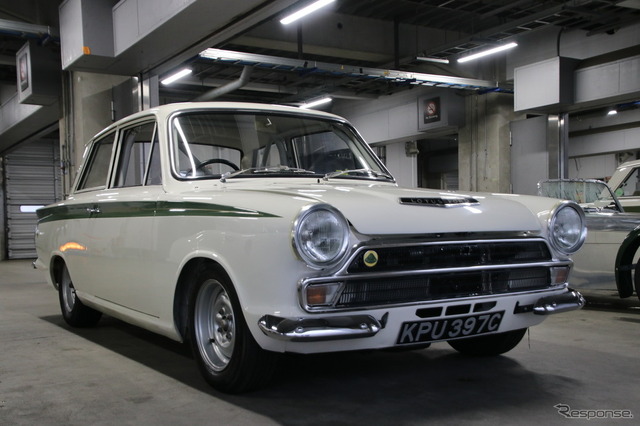 今回走行はしなかったものの、ロータス『コーティナMk1』のワークスカーが表れたのには驚いた。1966年にロータスの広報車として登録されたのち、同年のレースにもチーム・ロータスのワークスカーとしてデビュー。その後、アラン・マン・レーシングに売却され赤とゴールドのアラン・マン・レーシングカラーに変更されたクルマだ。現在はチーム・ロータス時代の仕様にレストアされている。