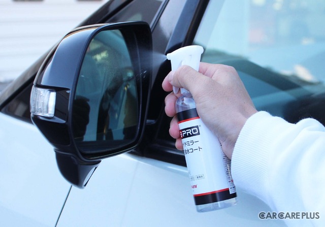 しのピー氏は「従来のスプレー缶(エアゾール)タイプは一点にコート剤が集中してしまい、ムラになりやすいんです。BPROの『サイドミラー超撥水コート』は霧吹きのようにミストが広がるんですよね。ミラー全体に均一に塗布できるところが良い」と、失敗しにくい点を高く評価した。