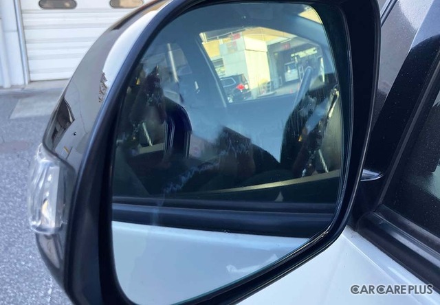 しのピー氏は、施工後のミラー面について「白くならない、とてもクリアな仕上がりですよね。撥水コート剤って、塗布すると若干ですが白っぽくなりやすいのですが、BPROの『サイドミラー超撥水コート』は他社製品と比較して、とてもクリアです。目で見てミラーが白っぽくないのがわかります」と、その仕上がりに太鼓判を押した。