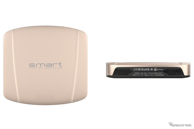 まずはこちら、「smart(スマート)」の『T-box』(価格:6万280円)から紹介しよう。当品は「HDMI出力端子」を装備するので、例えばリアモニターにも動画系アプリの映像を出力できる。音声は「カープレイ対応機」を経由してリアスピーカーからも聴こえてくる。というわけで動画系コンテンツをリアゾーンでも楽しめるようにしたい場合には、当品のようなタイプが向く。