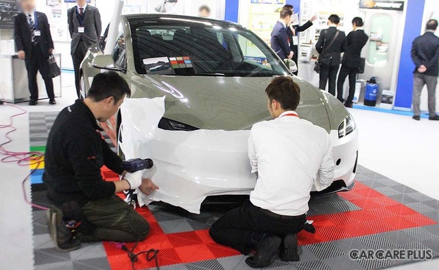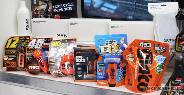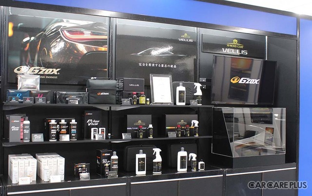 プロ向け商材としては、オール水性軽補修システム「CLIMAX エコペイントオールフリー」のほか、プレミアムガラス系コーティングブランド「G’ZOX」シリーズを展示。2025年11月4日に発売された、新開発の高密度反応硬化型シロキサン系トップコートを採用する二層構造ガラス系ボディコーティング「G'ZOX ハイモース コート ヴェリス」がアピールされていた。また、自動車用コーティング技術を応用した自転車専用シリーズ「velogue」や、カーラッピングフィルムの施工実演も行われ、多角化する自動車アフターマーケットのニーズに応える商材が取り揃えられていた。