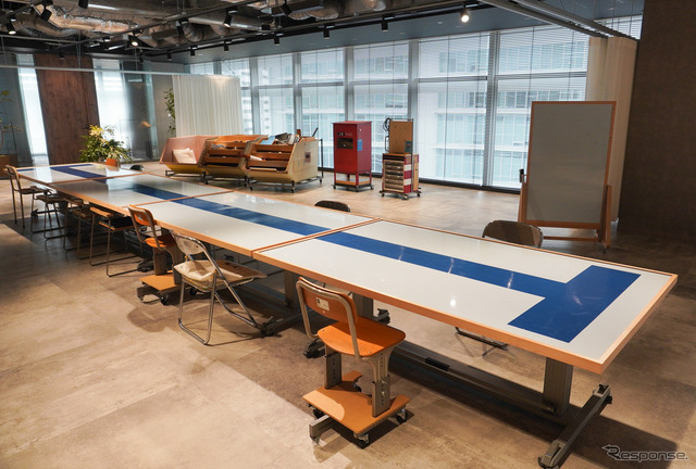 ヤマハ発動機が横浜みなとみらいに構える共創スペース「YAMAHA MOTOR Regenerative Lab(リジェラボ)」に、バイクの部品を使ったファニチャー(家具)が新たに加わった。17日、企画デザイン・制作を手掛けた“空間づくり”企業の船場(せんば)とともに、4アイテムを公開した。