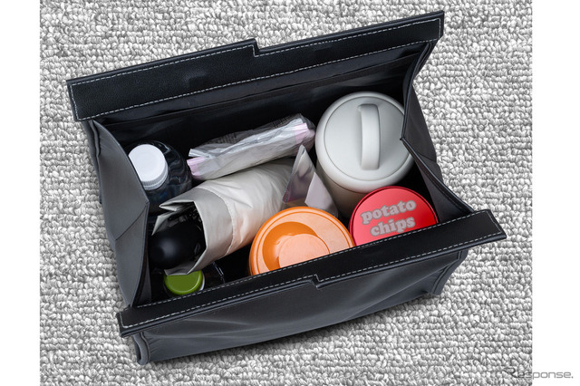 続いてここからは「SEIWA(セイワ)」の新作をフィーチャーする。まずはこちら『置き型ダスト(WA171)』(価格:オープン、実勢価格:2180円前後)から。当品もゴミ箱らしからぬルックスにて仕上げられたひと品。上質で落ち着いた黒色本革調生地が使われていて、車内に置いておいて野暮ったくなくインテリアともしっくりなじむ。